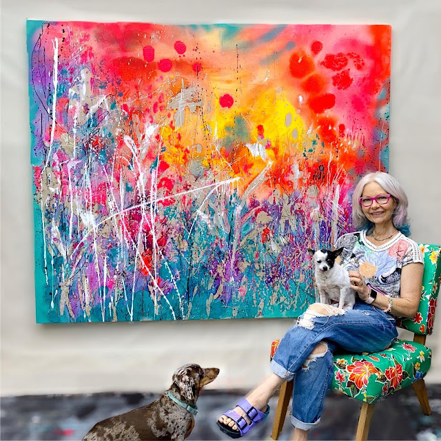 I started painting again from a small home studio, The following year, when I got my all clear cancer scan... I decided to start painting BIG. I had always wanted to since I was a little girl, but had been too scared to try. I got a big studio to pursue that dream. It was a huge step for me because I wasn't sure that I'd be able to communicate with people, and had a permanent stomach feeding tube. I found the more I tried to talk the better I became at it. My speech won't ever be perfect, but I'm here 6 1/2 years later... cancer free. I'm living my dream and have never been happier. ![]()